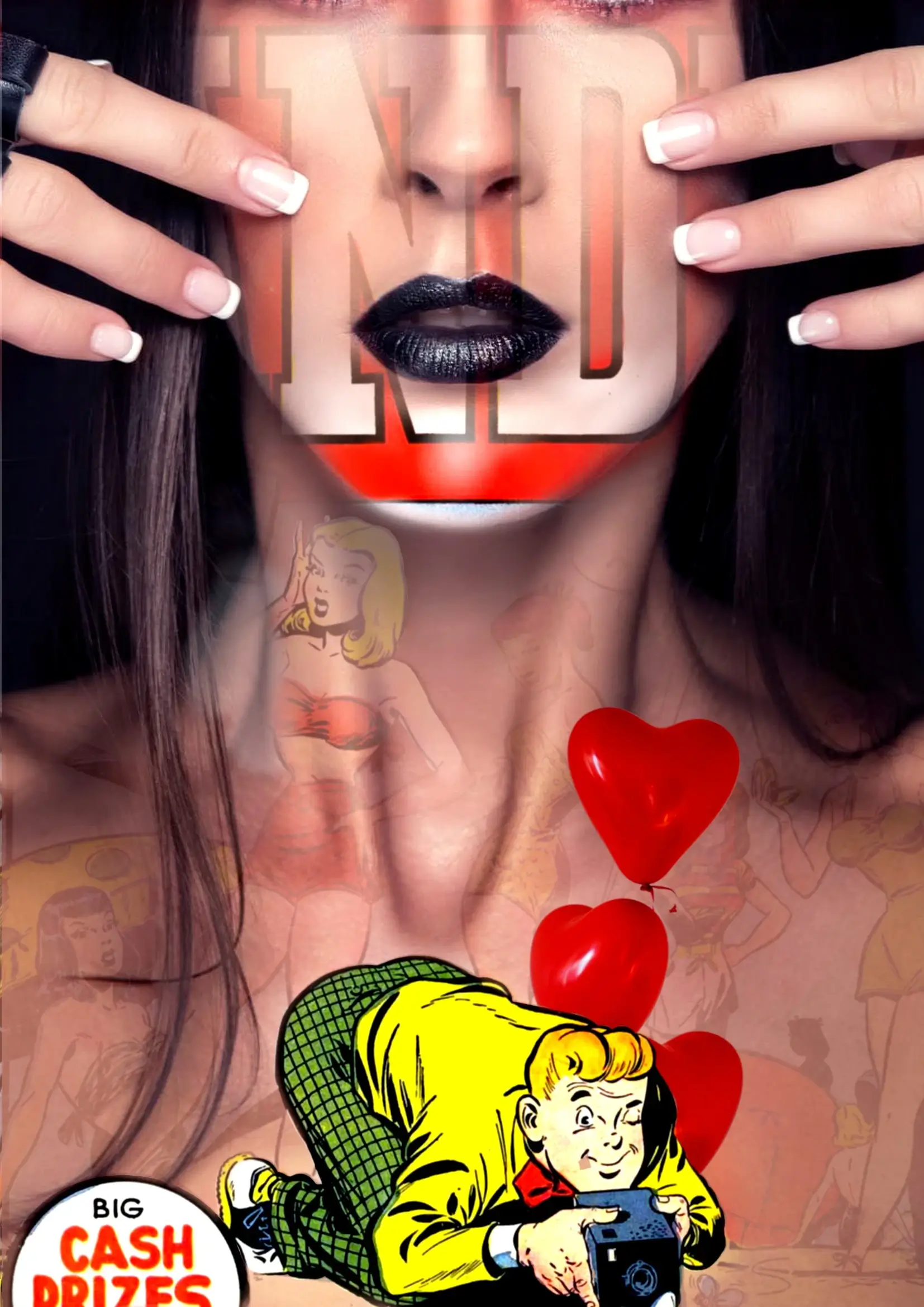 ETUDE DE STYLE / Jeu de transparence et de contraste : le corps réel dialogue avec l’image idéalisée et héroïque du comic. Oeuvre 100% numérique crée sans IA. Série réalisée en 2021. eTUDE DE STYLE